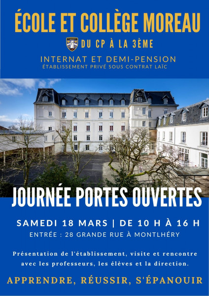 Venez nous rencontrer aux Portes Ouvertes qui se dérouleront le samedi 15 mars 2025 et le samedi 24 mai 2025 de 10h à 16h. Nous vous y attendons nombreux!